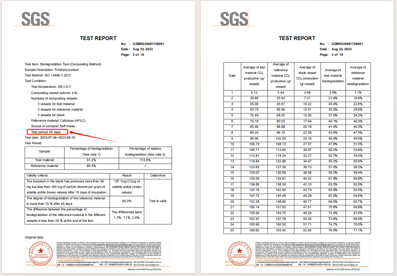 In 2023, we delivered our products to the SGS professional organization for testing, and in August 2023, we received the professional degradable test report returned by the SGS organization